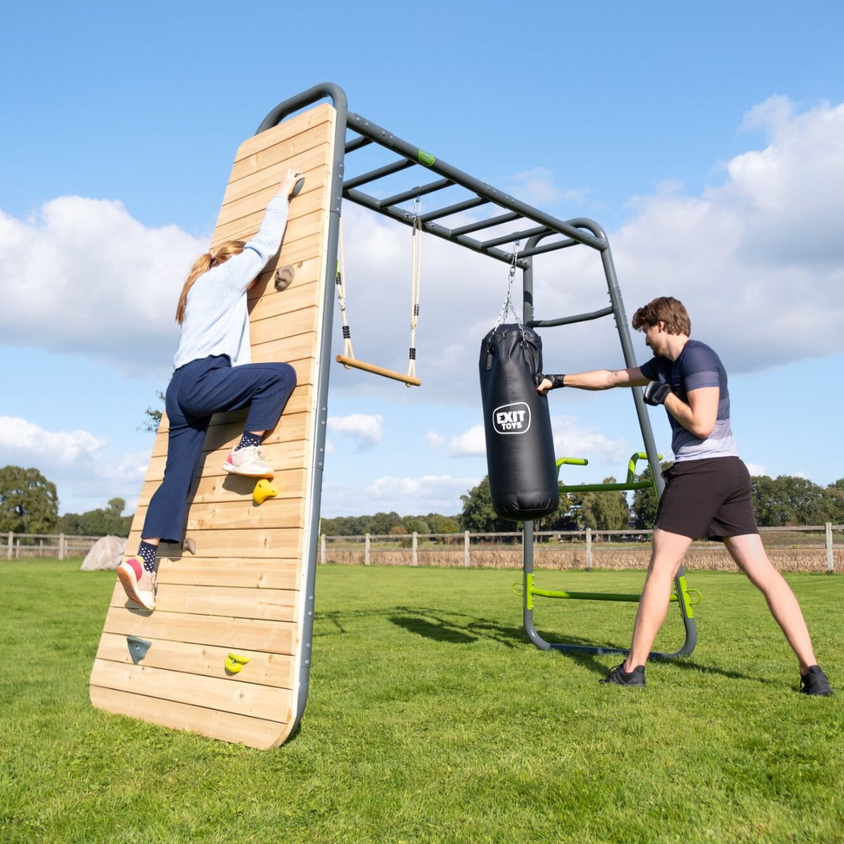 Despite its complete character, the MB220 takes up surprisingly little space. The device fits in almost any garden and is easy to assemble yourself. With the EXIT GetSet MB220 you create a central place in your garden for exercise, play and health – where every family member can find his or her own challenge. GetSet and go!