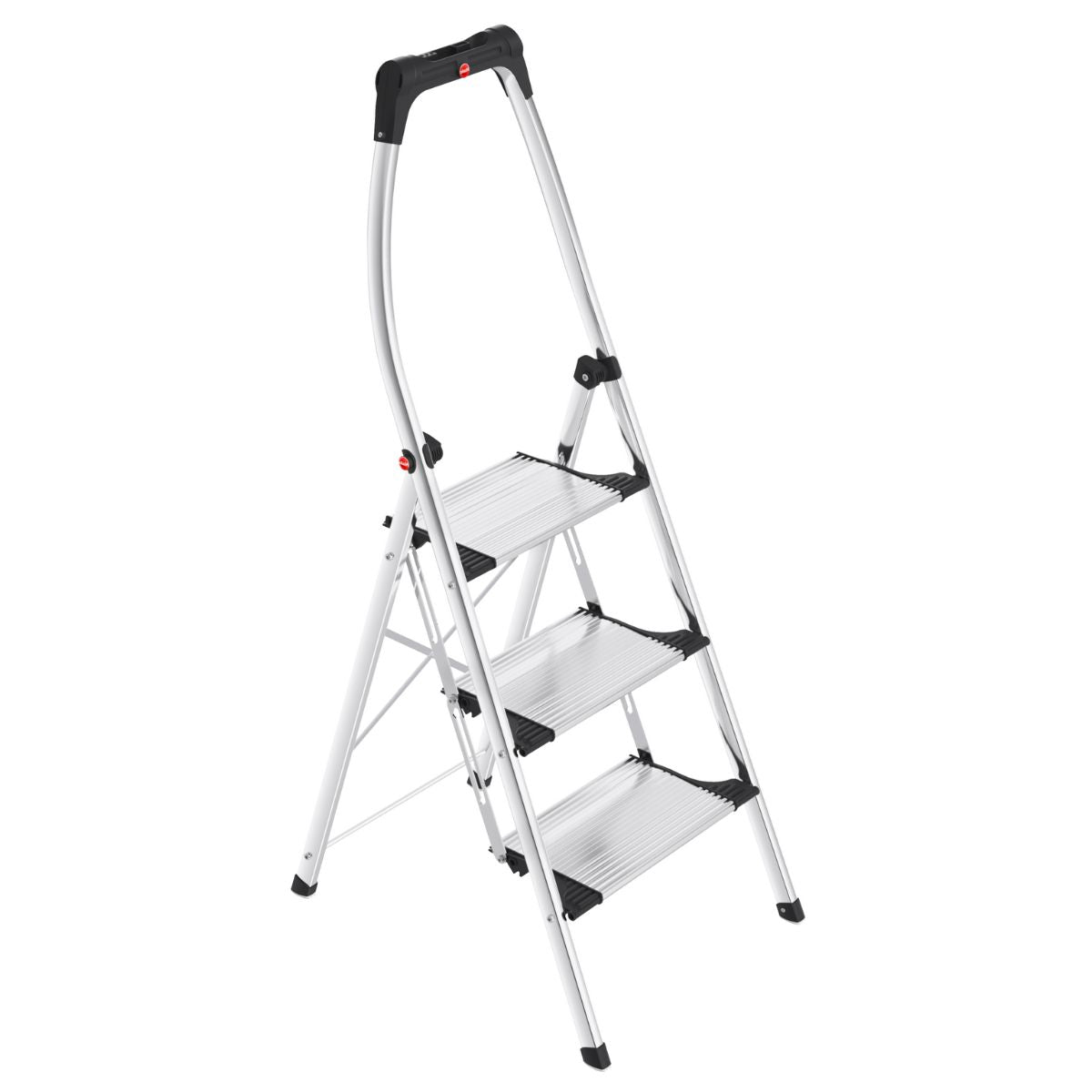 Mit 3 Stufen und einer Arbeitshöhe von bis zu 274 cm ist die Stehleiter für die meisten Aufgaben im Haushalt ideal, für noch höhere Einsätze kann ein größeres Modell praktischer sein.
