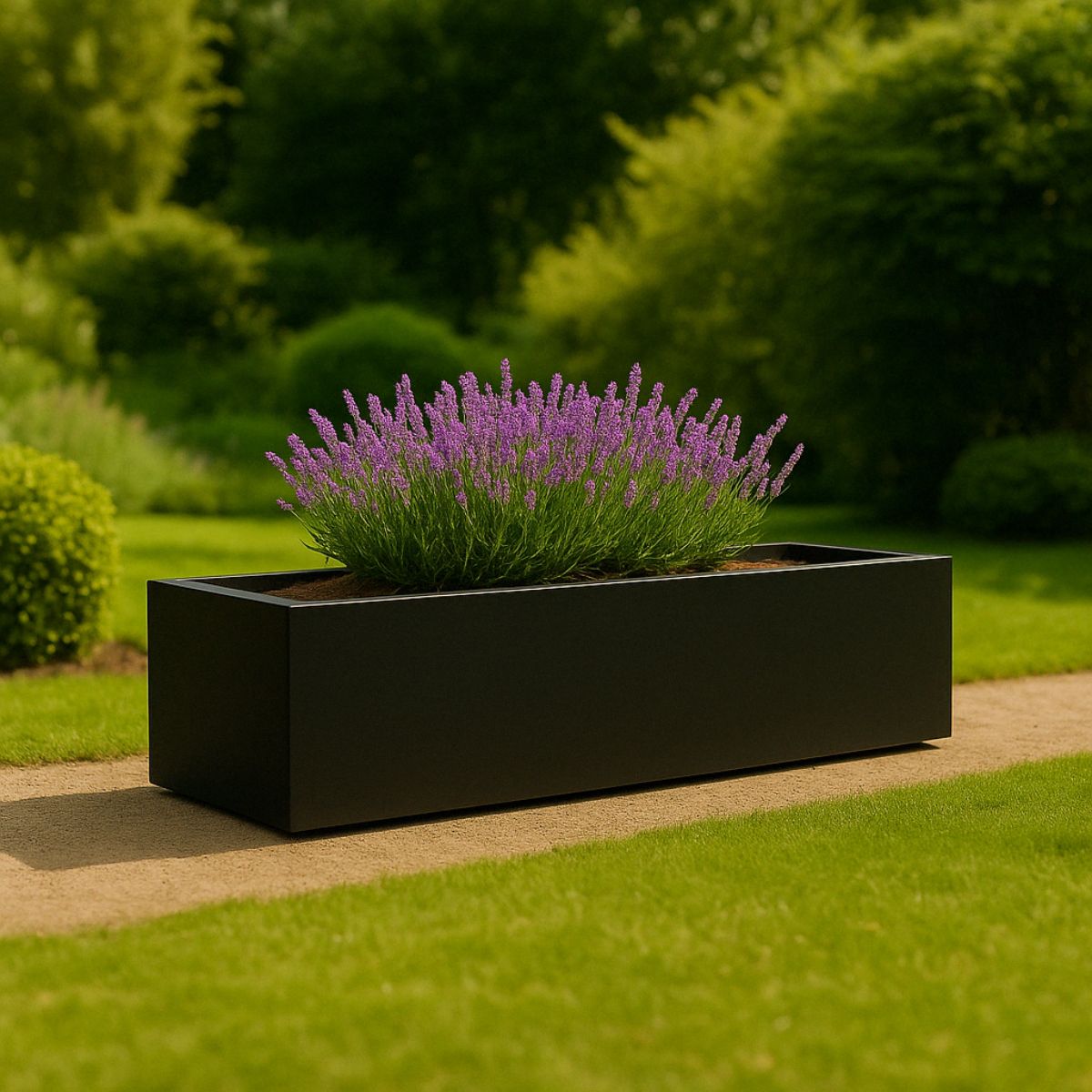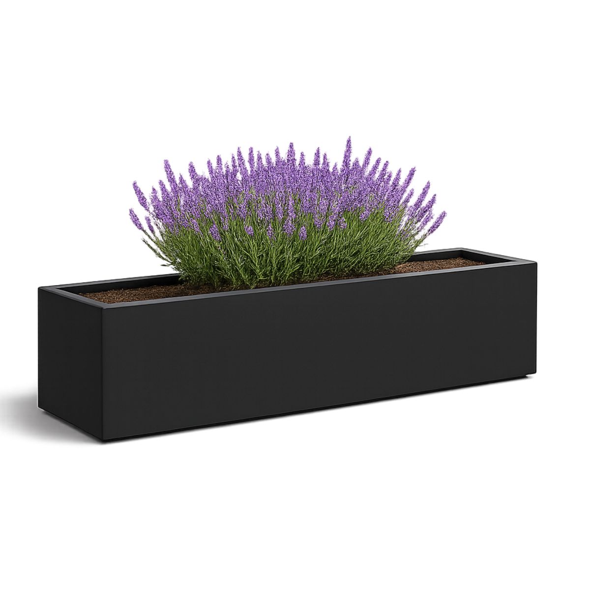 Jardinera de poliéster GARDRA 200x40x33 cm - Negro azabache (RAL 9005)