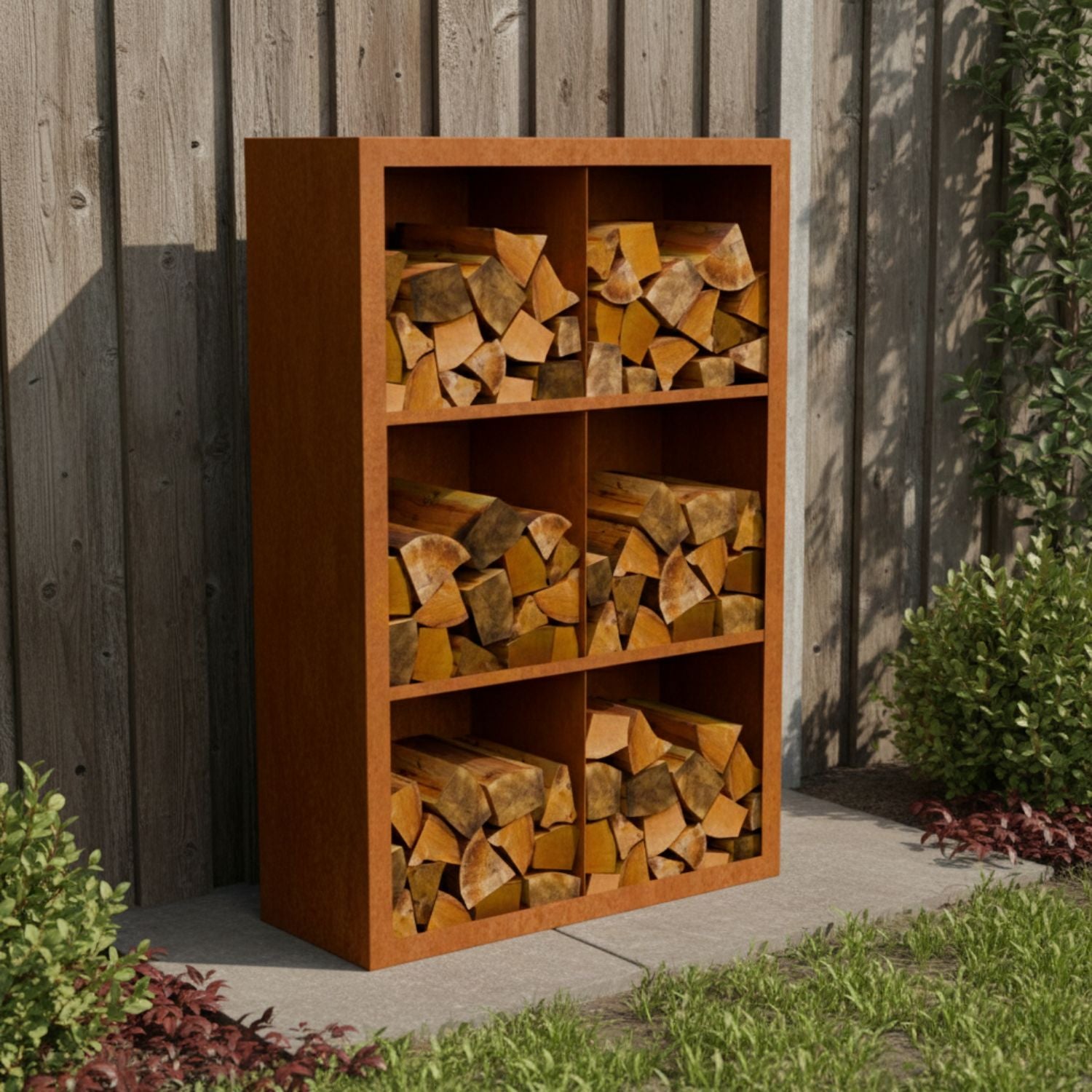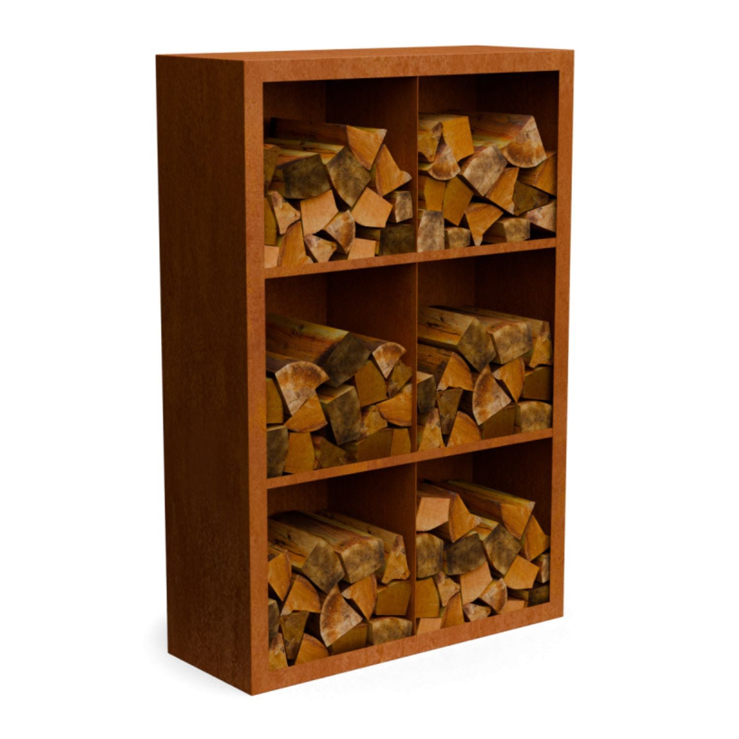 Cortenstalen houtopslag met 6 Vakken met achterwand 100x38,5x150 cm