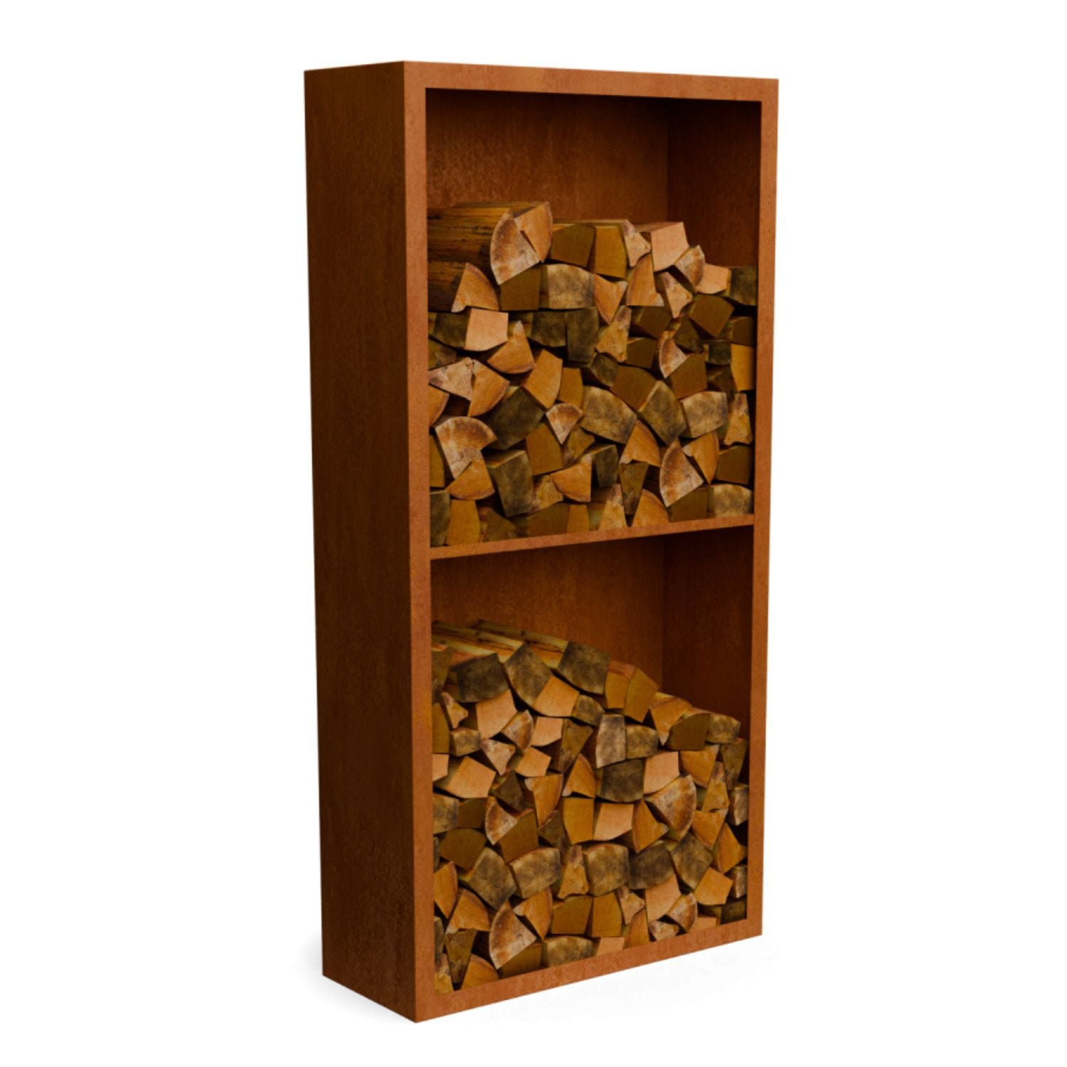Cortenstalen houtopslag met 2 Vakken met achterwand 100x38,5x200 cm