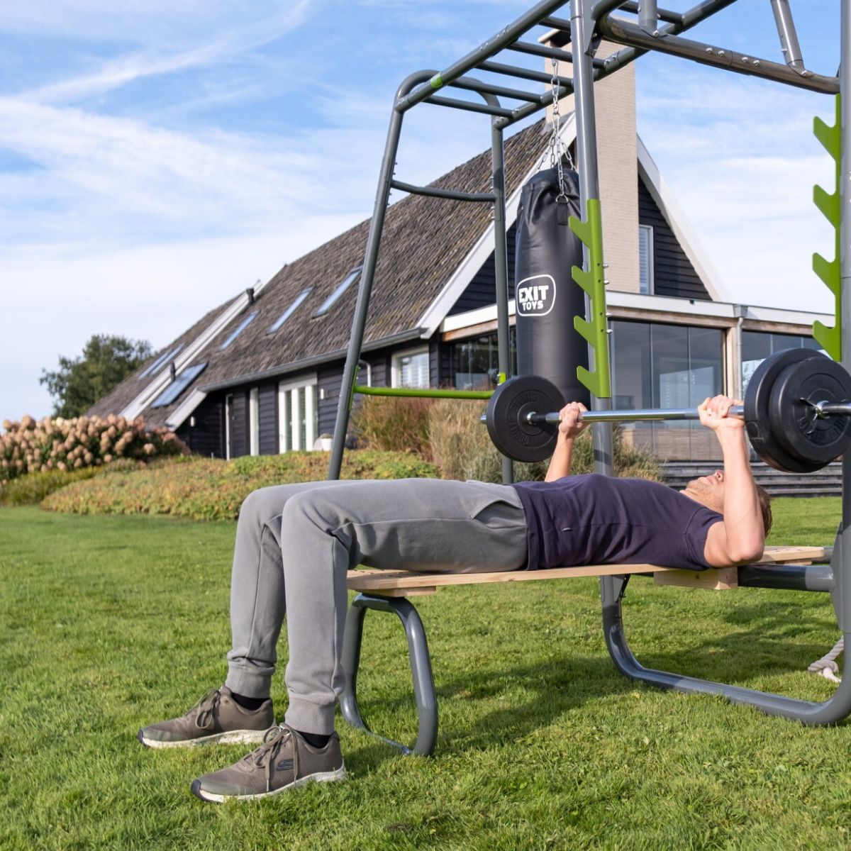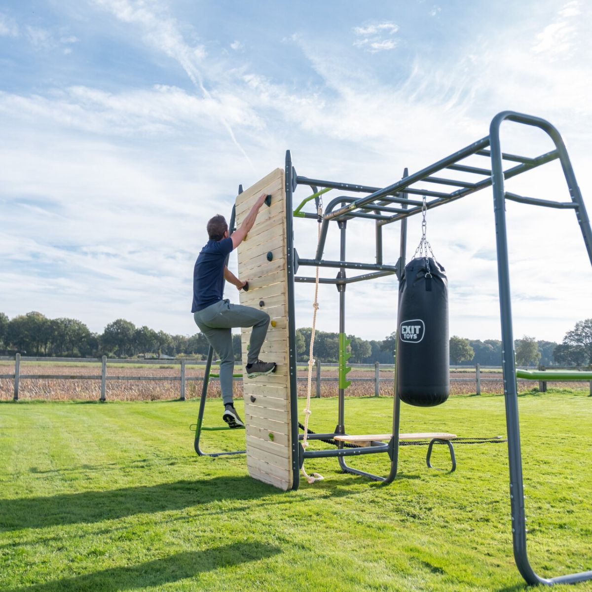 Con la PS520, puedes hacer press de banca, dominadas, flexiones, fondos, elevaciones de piernas colgado e incluso boxeo sin esfuerzo. El rocódromo integrado ofrece un reto extra y fortalece todo el cuerpo. ¿Quieres aún más variedad? Simplemente añade accesorios EXIT GetSet, como anillas de gimnasia de plástico para entrenamiento de fuerza inestable con tu propio peso corporal. ¿Y quieres usar la barra de mono? Retira el saco de boxeo y entrena específicamente la fuerza de agarre, la coordinación y los músculos del tren superior.