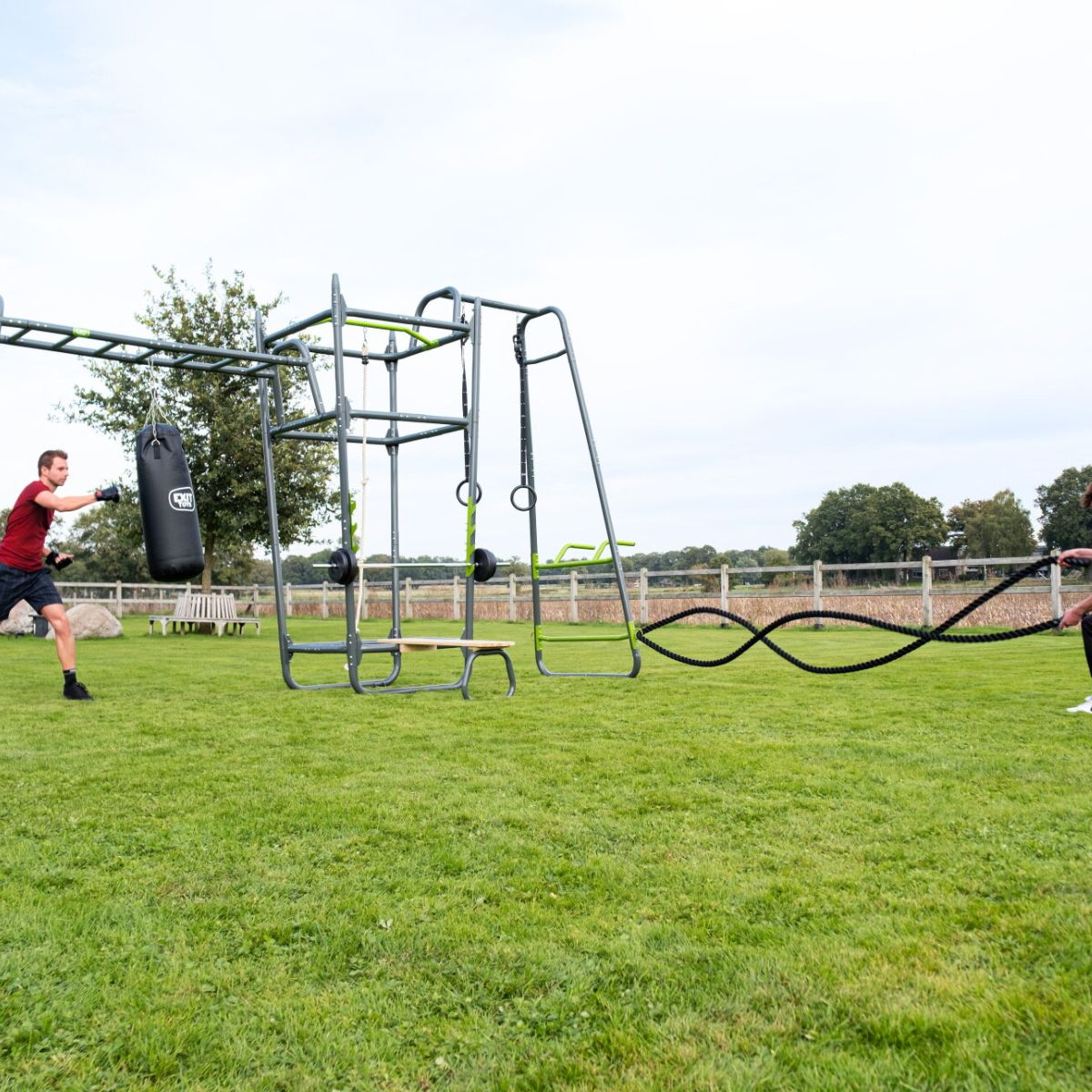 Con la GetSet PS520, puedes ejercitarte cuando te convenga: solo, con tu hijo adolescente o con amigos deportistas. Los accesorios incluidos, que incluyen un saco de boxeo, un banco de fitness, soportes para barra, barra de dominadas, estación de fondos, cuerda de escalada y un rocódromo completo con asas, te ofrecen todo lo que necesitas para un entrenamiento efectivo de cuerpo completo. Y gracias a su diseño compacto, esta máquina cabe en casi cualquier jardín.