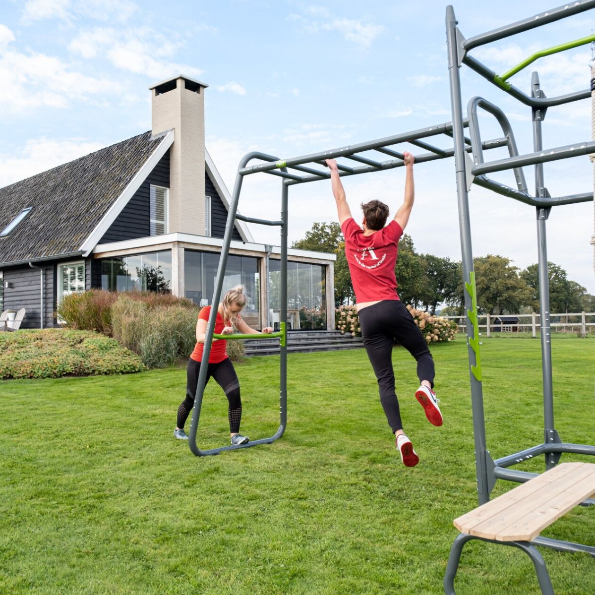 ¿Quieres ejercitarte a cualquier hora del día sin salir de casa? Con la EXIT GetSet PS520, llevas una solución completa de fitness al aire libre a tu jardín. Esta estación de energía multifuncional, de más de cuatro metros de largo, está diseñada para deportistas mayores de 14 años y adultos, e incluye nada menos que diez accesorios de alta calidad. Ya sea que trabajes fuerza, resistencia o coordinación, la PS520 es compatible con todo tipo de entrenamiento, en todos los niveles.