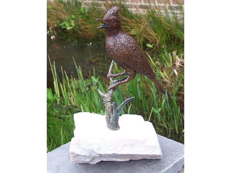 Bronzen beeld Vogel op tak 25x15x18cm