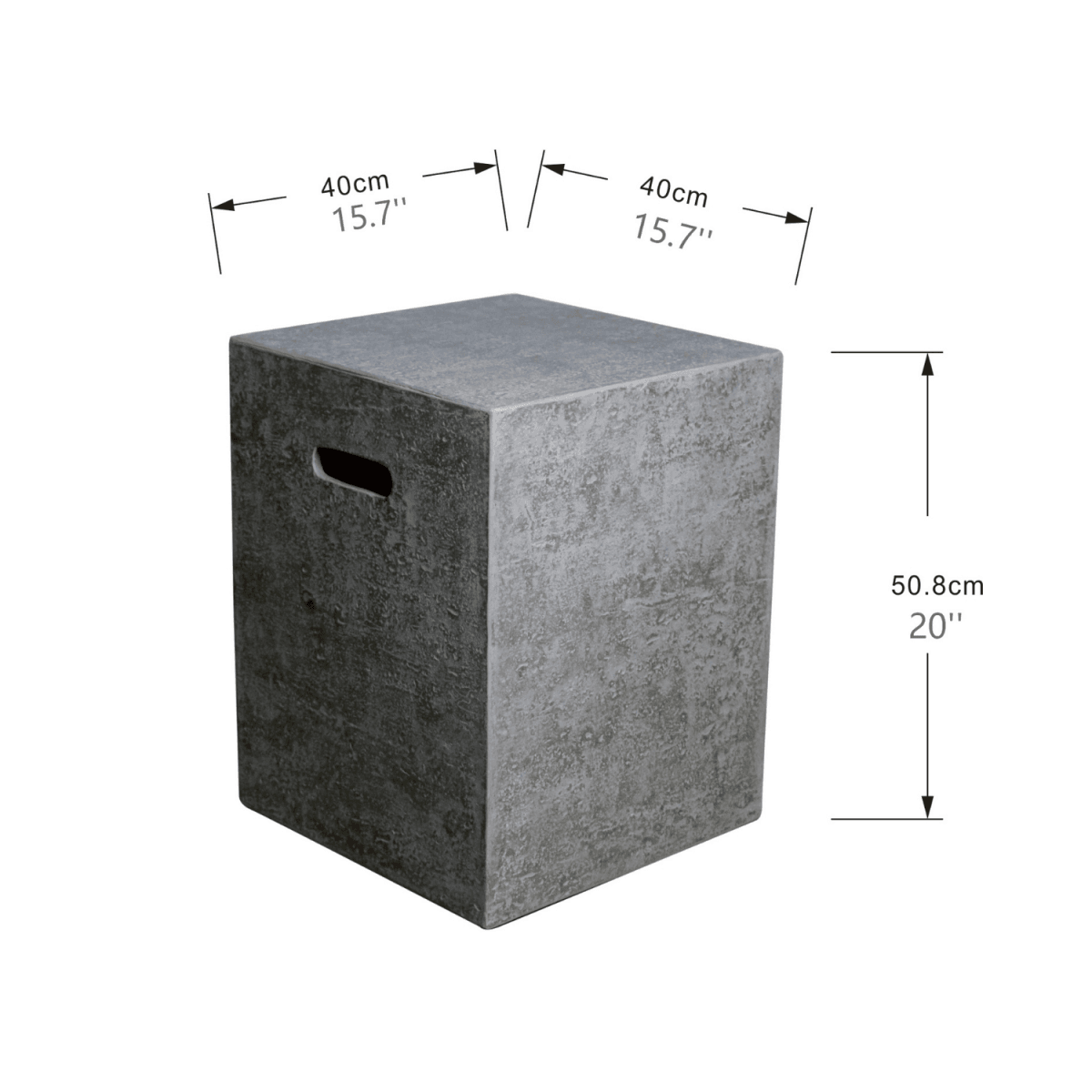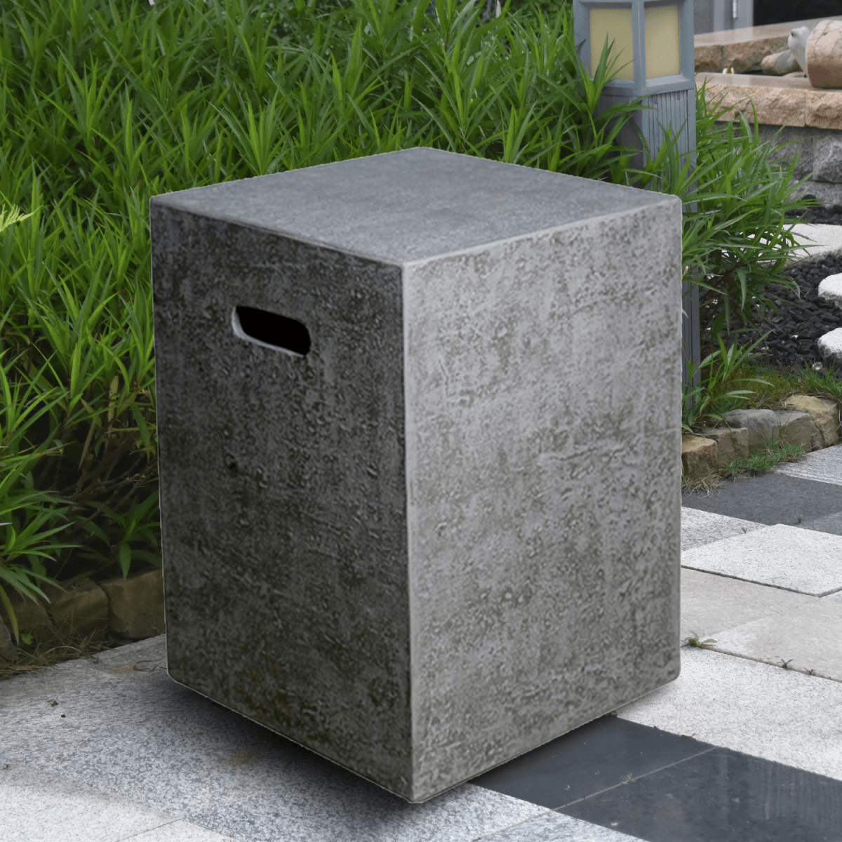 De decoratieve gasflesafdekking Elementi van vezelbeton dekt je gasflessen snel, gemakkelijk en veilig af. Vezelbeton is een met glasvezel versterkt beton dat zeer duurzaam en robuust is. De cover past op een gasfles van 5 kg. De gasflesafdekking heeft ook handvatten, zodat ze eenvoudig te verplaatsen is, net als het verwisselen van de gasfles zelf.