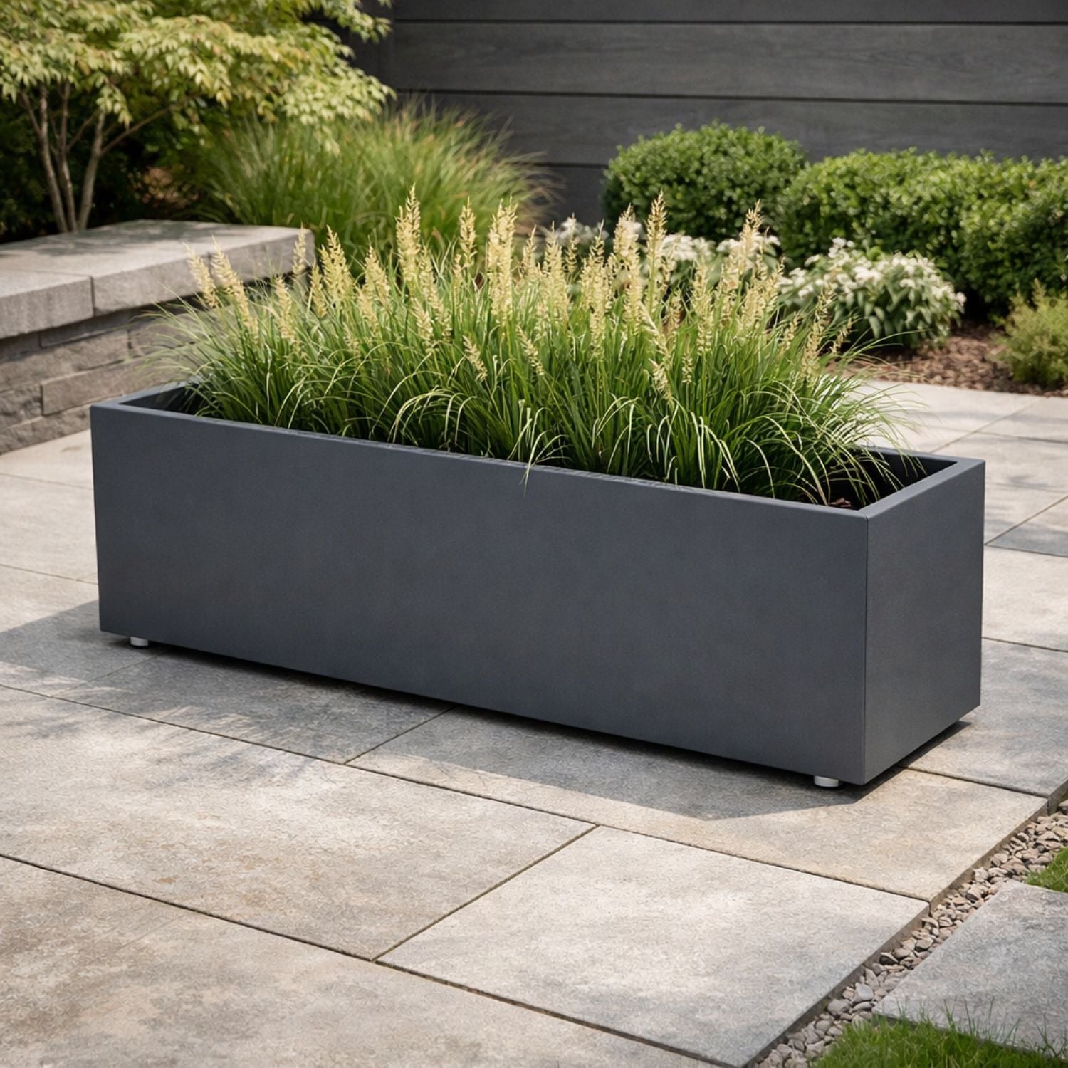 Je wilt een buitenruimte die klopt tot in de details. Een terras of balkon dat rust uitstraalt, waar jouw beplanting echt tot zijn recht komt en waar je niet elk seizoen opnieuw hoeft te investeren in onderhoud of vervanging. Deze polyester plantenbak in Zwartgrijs (RAL 7021) van 150x40x40 cm is ontworpen voor wie kiest voor duurzaamheid, strak design en praktisch gebruiksgemak in één doordachte oplossing.