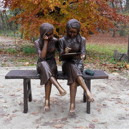 Mit der Bronzestatue 2 Mädchen auf Bank 100x64x102cm (HxBxL) entscheiden Sie sich nicht nur für eine schöne Ergänzung Ihrer Sammlung, sondern auch für ein Stück Ewigkeit, das über Generationen hinweg strahlen wird.