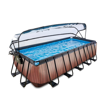 Das EXIT Wood-Schwimmbecken 540 x 250 x 122 cm ist ein rechteckiges Rahmenschwimmbecken mit Holzmuster und Überdachung. Dieses große Schwimmbad ist standardmäßig mit einer Sandfilterpumpe und einer Poolleiter ausgestattet, mit der Sie sicher in den Pool ein- und aussteigen können. Der Rahmenpool bietet ausreichend Platz, um auf einer Luftmatratze zu schweben. Und möchten Sie lieber unter Wasser schwimmen? Das EXIT Wood-Schwimmbecken ist nicht weniger als 122 Zentimeter tief, sodass Sie wirklich unter Wasser tauchen können.