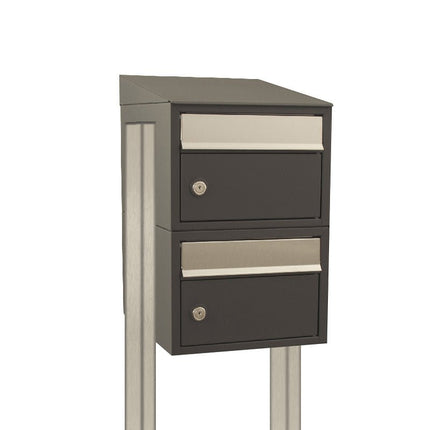 Machen Sie Ihre Postzustellung einfacher und zuverlässiger mit dem Briefkastenblock Brickset 2-hoch mit Dach und Stativ Anthrazit 201x37,5x38 cm (HxBxT) – die ideale Lösung für jede Umgebung.