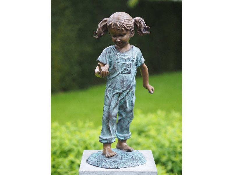 Bronzestatue Mädchen mit Vogel in der Hand 50x27x20cm