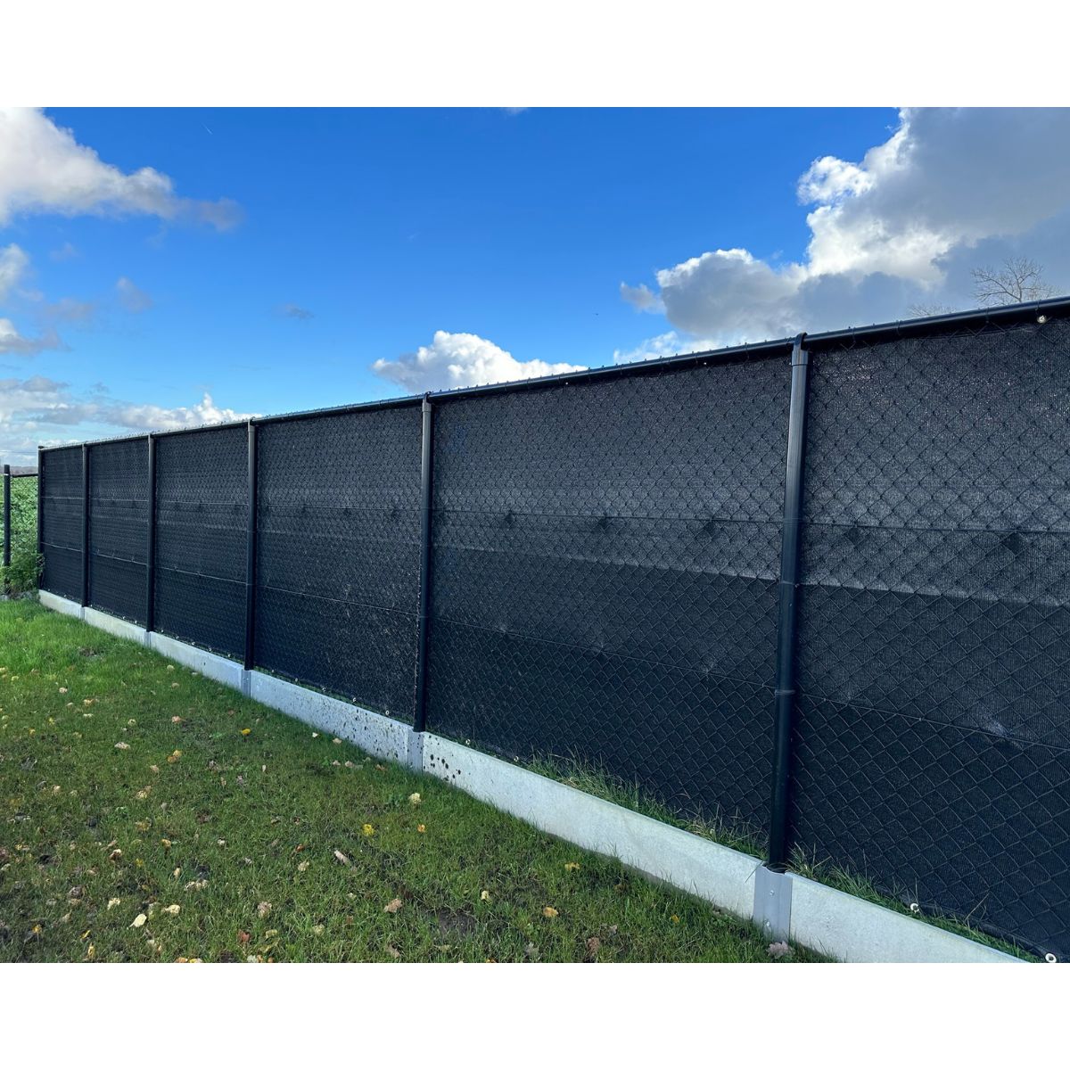 Der Sichtschutz besteht aus robustem Kunststoff, der allen Witterungsbedingungen standhält. Regen, Sonne und Wind können dem Material nichts anhaben – die Farbe bleibt schön schwarz und das Tuch bleibt auch bei Wind fest an seinem Platz. Mit einem Gewicht von 3,42 kg ist die Leinwand leicht genug, um sie selbst zu handhaben, und schwer genug, um straff zu bleiben. Der Pflegeaufwand ist minimal: Ein einfaches Abspülen genügt, um den Stoff sauber zu halten.
