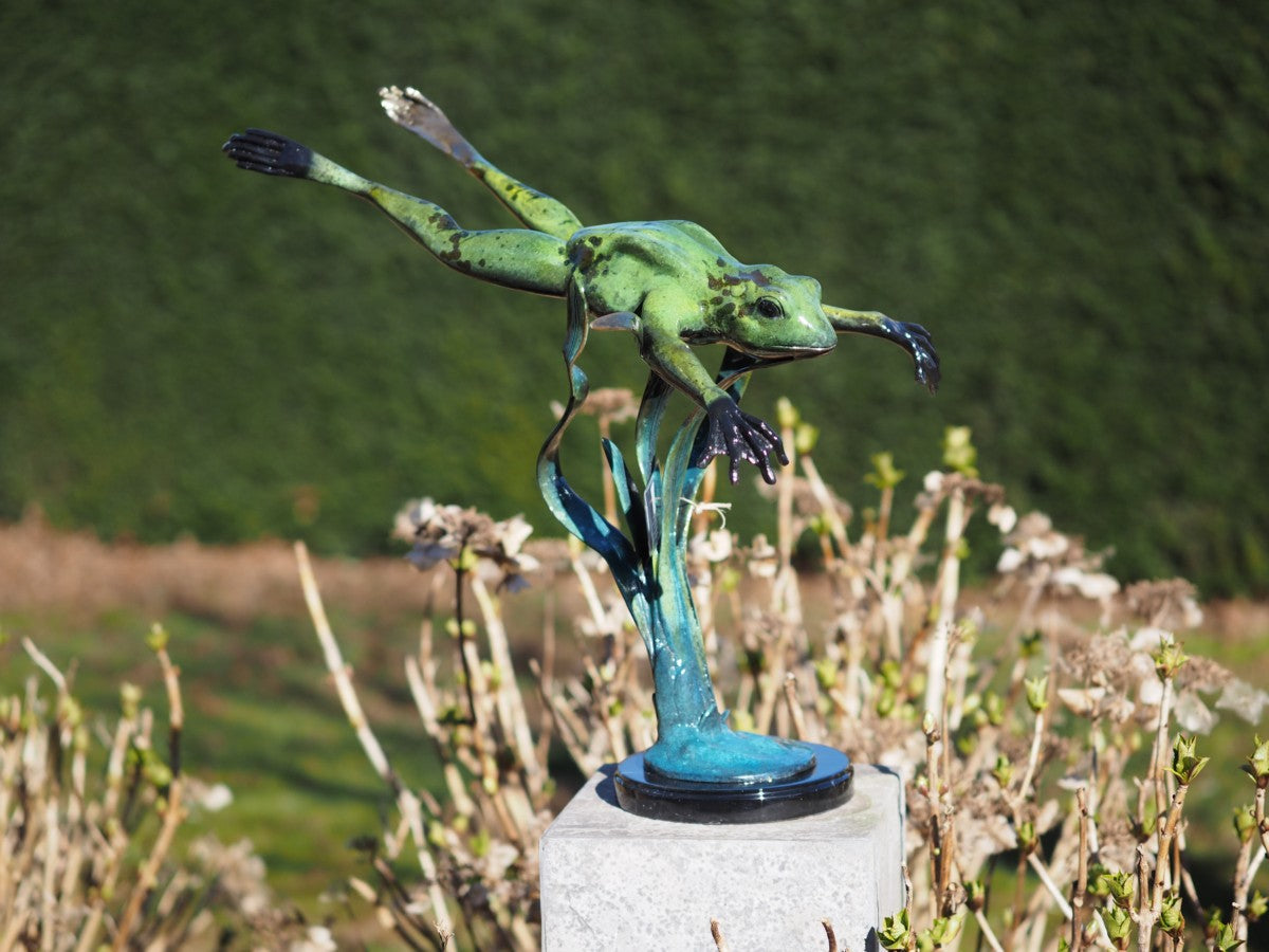 Bronz Zıplayan Kurbağa (Aşağı) heykeliyle, koleksiyonunuza güzel bir ekleme yapmakla kalmıyor, aynı zamanda nesiller boyu parlamaya devam edecek bir sonsuzluk parçası da seçiyorsunuz.